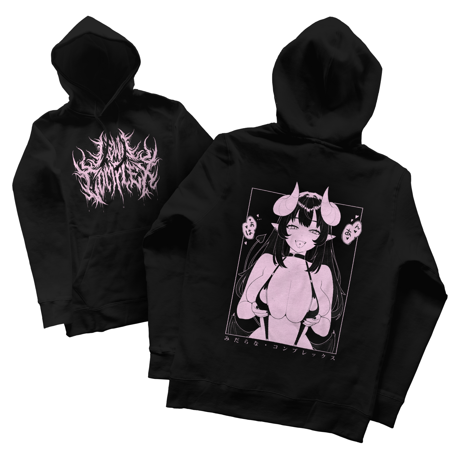 • Japanese text says "Lewd Complex", and indicates heavy breathing.